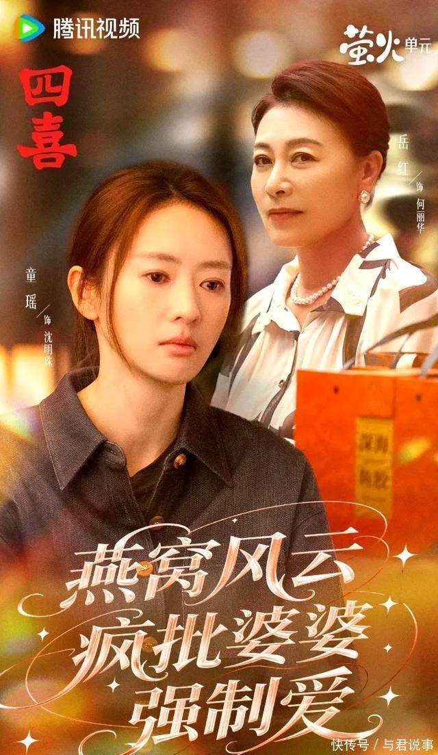 偏偏这时冯家还欠着一屁股债,婆婆重病住院,儿媳沈明珠怀着孕焦头烂额,丁虹这波“趁火打劫”式争遗产,直接把矛盾感拉到了顶点。 紧接着的掌掴戏更是让弹幕彻底沸腾。冯美奇忍无可忍冲上前扇了丁虹一巴掌,没想到丁虹也毫不示弱,直接还手,场面一度失控。 不得不说,《四喜》太懂得怎么抓目标观众的眼球了。 它不仅把冲突密度拉满,还叠加了多重狗血元素:沈明珠作为抱养的女儿,要在亲生父母、养父母和公婆之间周旋,这是“三妈争女”的家庭伦理线;亲生姐姐许知夏还面临着二胎逼生的职场困境,两条线并行把女性可能遇到的困境打包呈现。 更聪明的是制作方的宣发,把剧情包装成“燕窝风云,疯批婆婆强制爱”“震动全城!姐控弟弟不好惹”这种短视频风格的文案,精准适配了当下的传播逻辑,想不火都难。